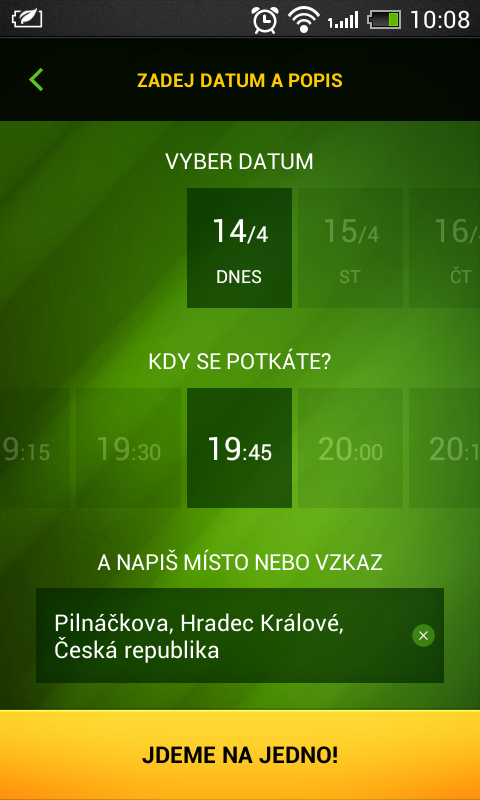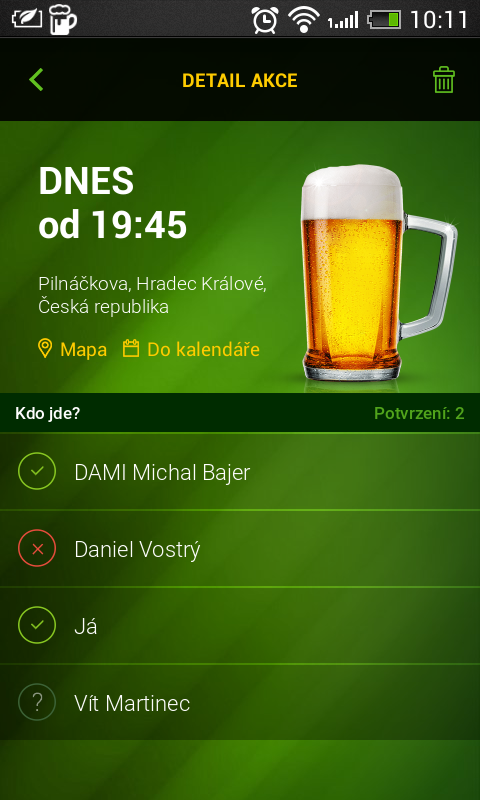 Aplikaci zřejmě použijete, když spěcháte a nemáte čas obvolávat kamarády a zjišťovat, zda mají čas a chuť na pivko. Po pár kliknutích máte vytvořenou akci a jen čekáte, kdo na ni zareaguje.